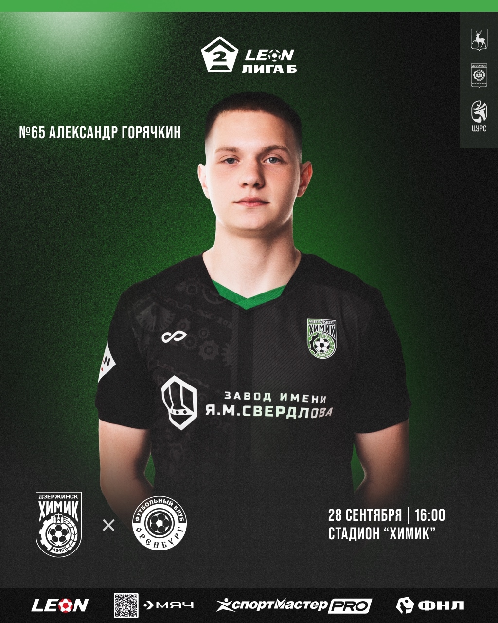 28 сентября дзержинский «Химик» в рамках 23-го тура LEON-Первенства по футболу среди команд Второй лиги Дивизион «Б», проведёт домашний матч, где примет команду «Оренбург-2»